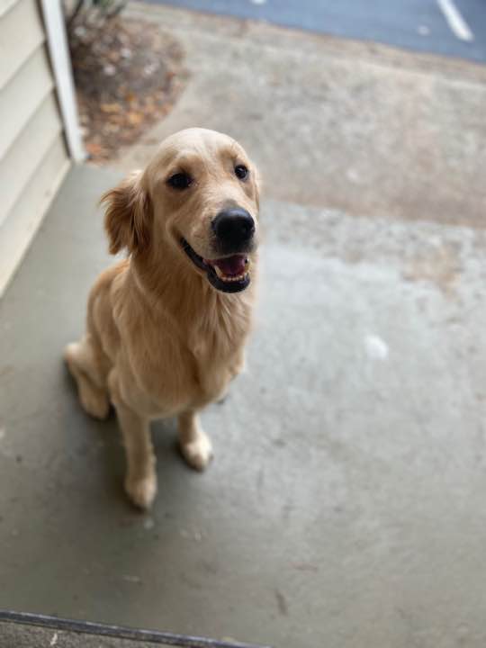 Has a knot on top of her head from when she was born. A dark brown smooth patch on her nose. Has a black spot on her tongue that is a birth mark.