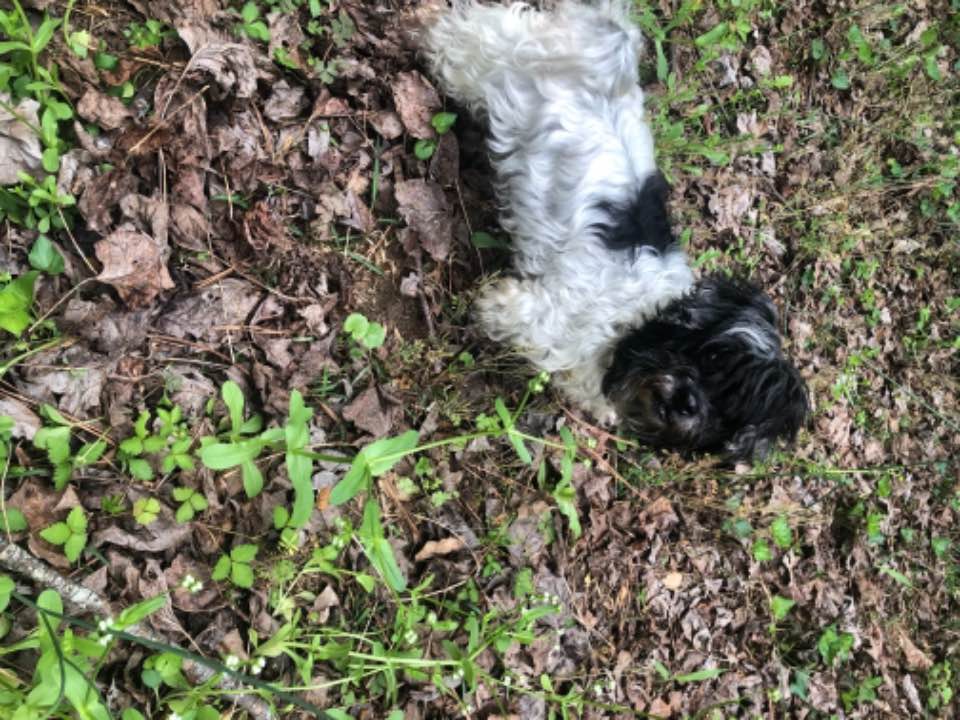 Spayed, missing teeth, feet are brown they tend to look dirty. Black head, body white with black spots. She was trimmed in June. Her hair grows quickly. May be longer now.