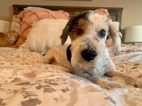 Senior. 10+? 100% Blind - Missing right eye, blind in remaining left. 100% Deaf - won’t come when called. Rescued this past spring from a shelter in Blaine - not familiar with area outside of his yard. No collar, no harness, no sweater. Got out of house while owner out of town. MICROCHIPPED.