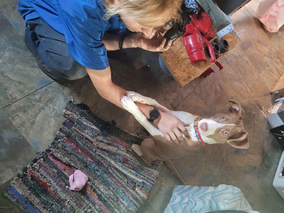 Will run away unless met with food. May be with other dogs, is scared of certain men after a break in. Very anxious but not dangerous. May be scared since she's been gone for longer than usual. I am so worried she will be stolen for fighting or breeding in this area and it is urgent that I find her before such happens. There are so many chained and caged dogs around my area in 100+ heat index. I've left food and water on my porch at home. Please help