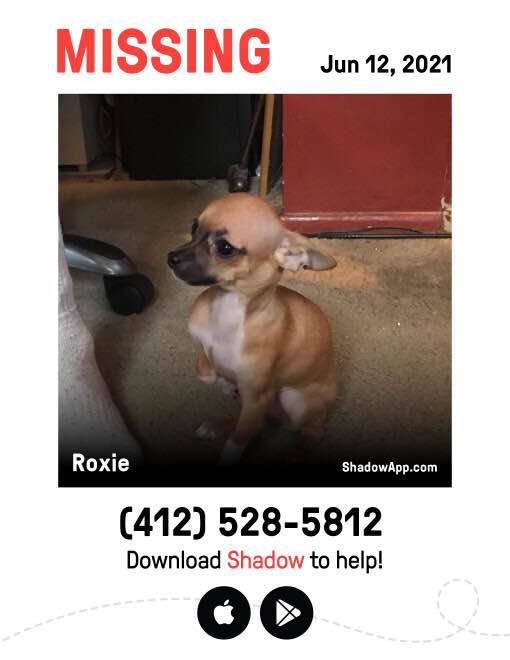 Roxie very small fawn chihuahua with white front legs, white chest, black face, black on top of tail