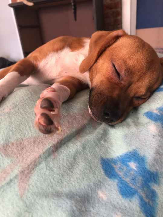 Very friendly most of the time but can bark when nervous. Very food motivated. Answers to either Snoopy Dog or just Snoopy. She was born in May so she is still very young