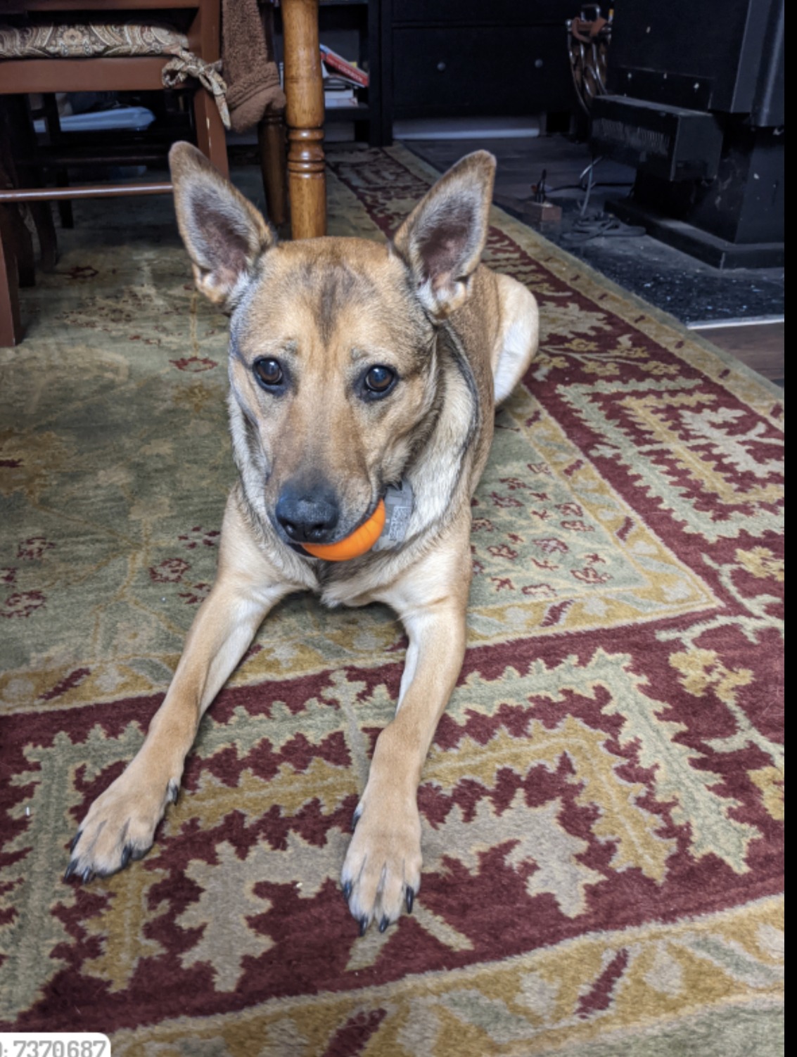 Loves people. Good with dogs but gets stand offish if approached by more than one dog.. her back hair spikes up.