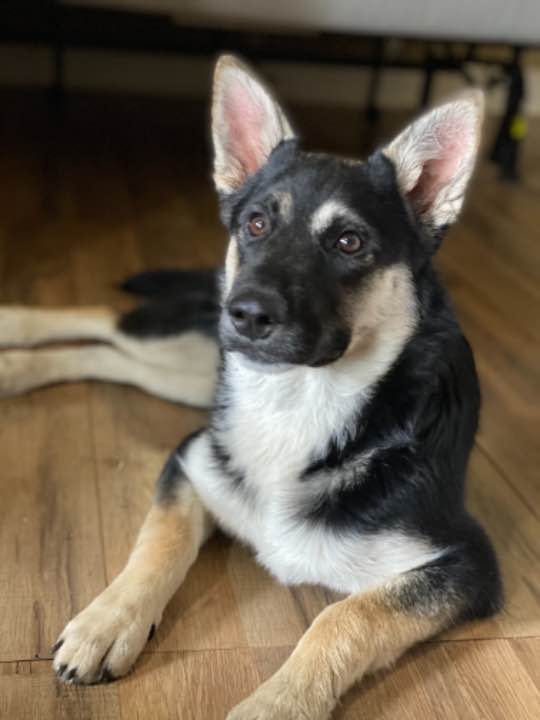 This little girl is very sweet and super smart. She seems to be house trained but is still jittery when being approached. However, she will approach for pets on her terms. We are visiting from out of state and leave Saturday. We really want to find her home.