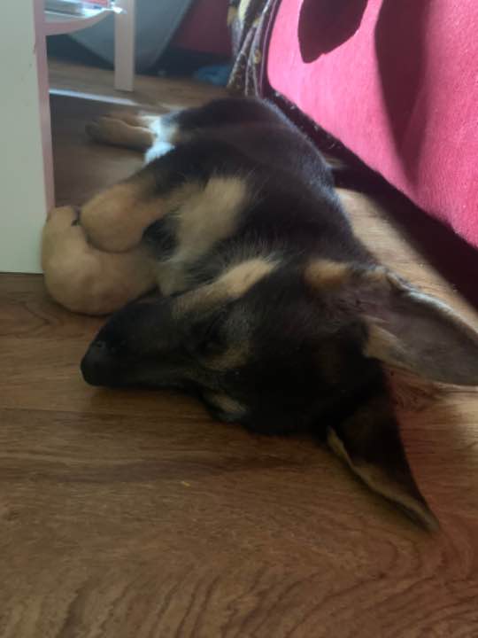 Approximately 2.5 months old, showed up in our driveway this morning. Please contact me if this is your dog, proof required.
