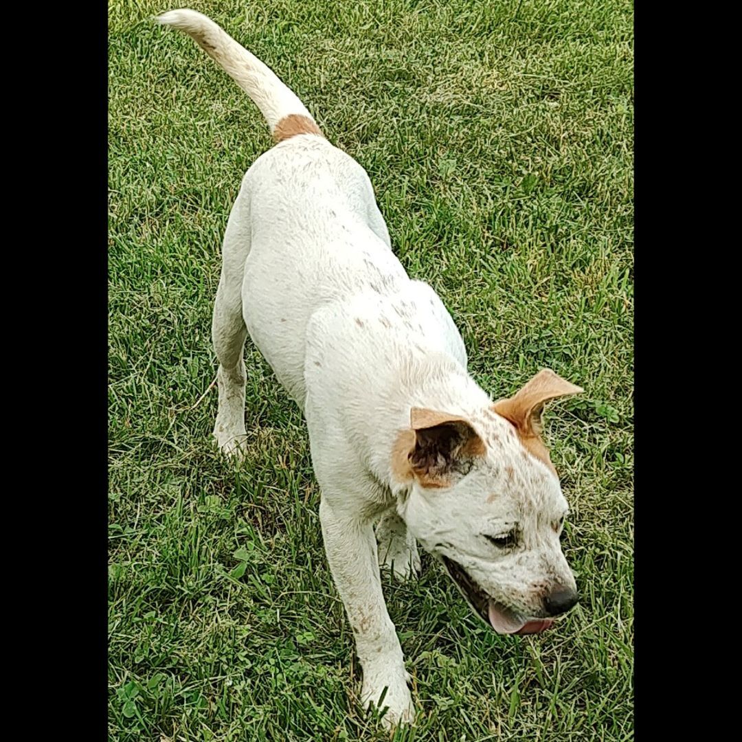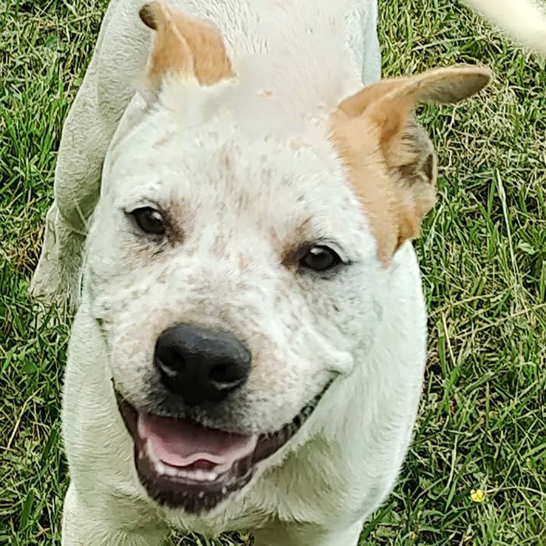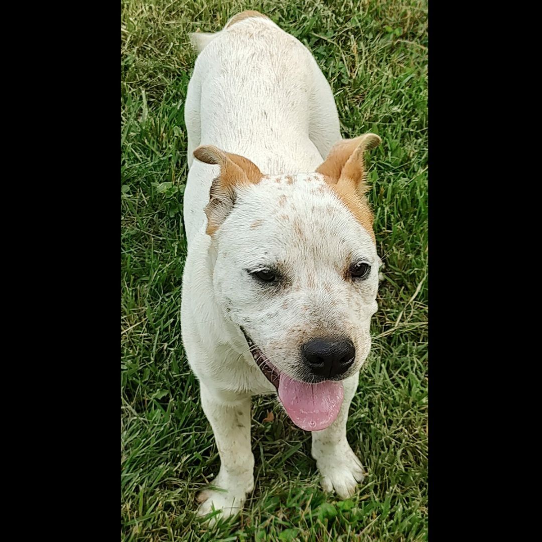 This handsome, happy boy is Kane. He is thought to be a red heeler/American bulldog mix, approximately 6 months old and weighing approximately 30 pounds. Kane is good with other dogs and doesnt bother cats. He is working on house training, is up to date on shots, neutered and microchipped. To apply to adopt Kane, please click on the "More About Us" button toward the bottom at right. Thats where you will find a link to our adoption application.