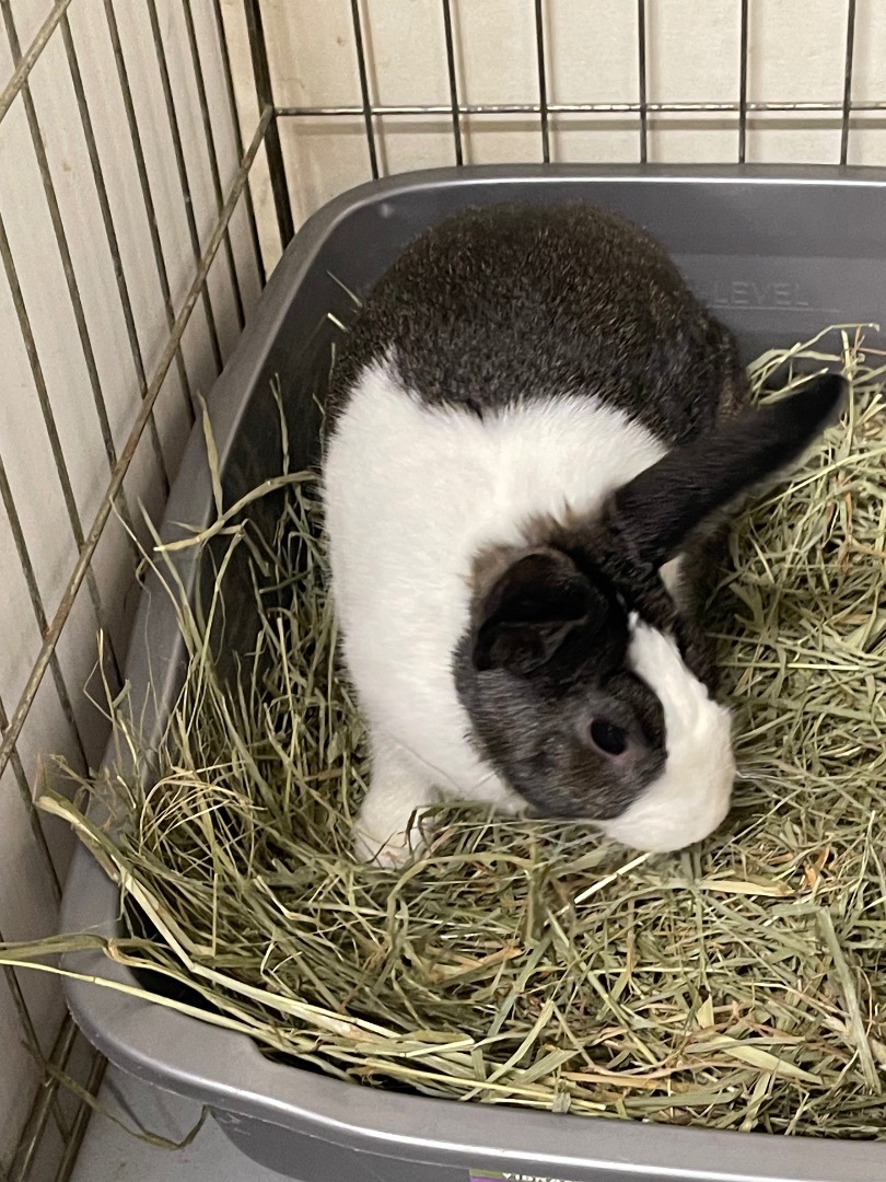 Cubby was found on a porch at a nearby college. He is a very friendly bunny, ,typical of the dutch breed, He was recently neutered and is working on his litterbox skills. He will be a wonderful bunny once he masters his litter box!