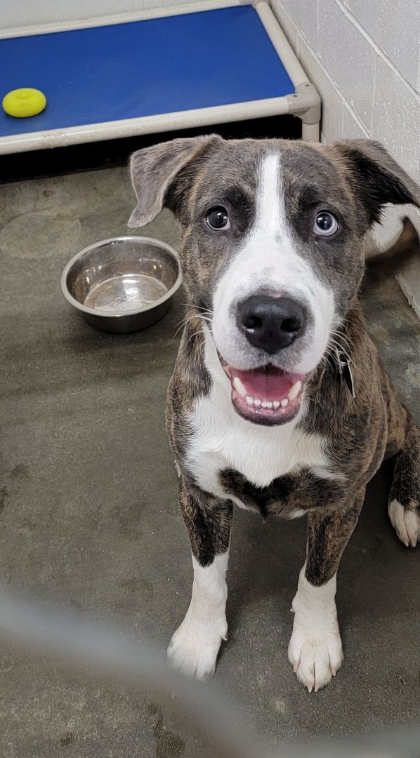 Dozer is an neutered male dog. Hes had his first set of shots and those need to be boostered on 12-27-23. He DOES NOT LIKE being in the cone of shame and busted out of it twice over Christmas weekend. :S Our vet had to use staples to keep his incision from popping back open. What a turd. Well bring him back over to the vet on 1-8-24 to have the staples removed and for a recheck of his Complete Blood Count (CBC). We think Dozer could be a Mountain Cur mix with maybe Husky? He has short, tricolor fur with brown brindle. He weighed 58 pounds on 12-21-23. Dozer is from the pound. He knows sit and hes fully potty trained, so *someone* had him before he ended up in the pound and that *someone* didnt claim him. :( Dozer tested positive for Lymes and Anaplasmosis, and negative for heartworm. He hasnt shown clinical signs of Lymes disease or Anaplasmosis, so were in the clear thus far. Our veterinarian estimates that Dozer was born on 6-15-22. We named him Dozer, and he doesnt really know his name is now Dozer, so his new owner(s) can feel free to change it :) Dozer has been on walks with the other dogs and does well with them. We havent let Dozer off-leash to run around the backyard with the other dogs yet. We dont know if hes compatible with cats. We havent experimented with that yet. Dozer loves all adults and children. Dozer is currently eating whatever dry dog food is donated. Dozer has had his first set of vaccinations, which will be boostered on 12-27-23. He has been neutered, microchipped, is up-to-date on his flea and tick preventative, tested negative for heartworm, tested positive for Lymes disease and Anaplasmosis, and has been dewormed. He has an appointment on 1-8-23 to have his staples removed from his neuter incision and a recheck of his CBC. Dozers adoption fee is $200 and we accept cash or check. We do not have the ability to accept debit/credit cards. For more information, please call The Humane Society of Richland-Wilkin Counties at 701-672-1676. Leave a message if there is no answer. The Humane Society of Richland - Wilkin Counties (HSRWC) reserves the right to decline adoption of any animal for any reason if it feels that the home will not be a good match. Please understand that by answering questions and filling out adoption forms does not guarantee the adoption of the pet, nor are you obligated to adopt the pet. We adopt to homes that are the best fit for our animals needs and not on a first-come/first-serve basis. Please read our shelter policies: https://tinyurl.com/32xtaexa