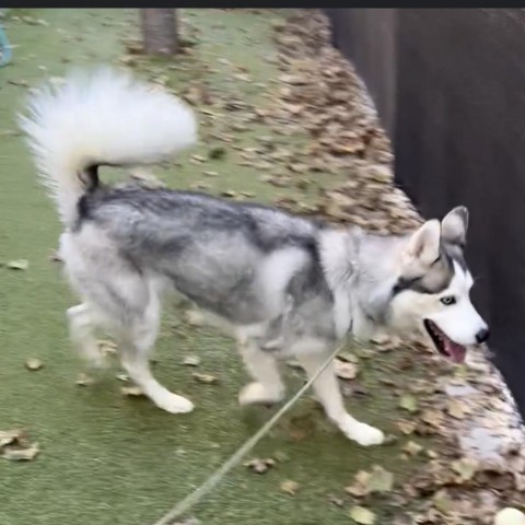 Name: Bob Barker Sex: Male Color: Gray & White Eye Color: Blue Birthday: 10/30/2022 (estimated) Weight: 44 lbs Large Dog Friendly: Yes Small Dog Friendly: Yes, but plays energetically - may be too rough for really small dogs Cat Friendly: Possibly with careful intro, training and supervision Crate Trained: Yes Housebroken: Yes. Paces and Boops when he needs to go out. Energy Level: Very high energy. All play, all the time. Typical Husky wrestling. Reaction to New People: Cautious at first, but friendly. Working on not jumping. Kid Friendly: Yes, but his strength and energy may be better suited to older or dog savvy kids. Training: Knows Sit, Down, Come. Come is subject to distraction. Working on Stay, Wait, and Off. Counter Surfing is a work in progress. He has amazing reach for his size. Knows how to walk on a loose lead, but excitement definitely takes over sometimes. Grooming Needs: Standard Husky Coat. Needs regular brushing. Loves digging and mud, but cooperates well with being cleaned up. He has a hard time holding still for long, but he readily accepts all types of handling - feet, ears, mouth, tail. Fence: 5-6 foot. Dig prevention stakes or concrete border. Not a jumper, but a climber and a master digger. Solo or Siblings: Hes VERY social. He has a very high need for companionship. Hed have a rough time without another dog, unless his human will interact with him regularly throughout the day. From the Foster: Bob is a strong, energetic, young husky. His brain and body need plenty of exercise. Hes very social with dogs and humans. He loves to play and explore from morning til night -- preferably outdoors. Indoors too, if you have a high tolerance for running, chasing, jumping and occasionally rearranging the furniture. He also loves to snuggle for brief periods. He will chill next to my work desk for an hour, with a selection of good chew toys, but hed rather be playing. He will hop right in to his kennel any time you ask. He will nap there voluntarily and sleep through the night, but during the day does not enjoy it for long. He will howl at first but responds to Quiet-Stay. He loves long walks, especially good sniffing walks. Hell walk beside you, if you require it, but would rather be out front and pulling if you let him. He would definitely enjoy pulling sports. Weve started introducing the bike and sled. He does not know Gee-Haw, but he will follow a trained leader. We are currently working on his fear of stairs. This playful boy will make a great adventure buddy for an active family. Adoption fee: $400 All dogs coming into Adopt a Husky Minnesota receive care tailored to their needs, including: Nose-to-tail exam with a partner veterinarian, Vaccinations (Rabies, Distemper, Bordetella), 4DX test to check for heartworm or tick exposure, Fecal Analysis, Heartworm and Flea/Tick Preventative, Spay/Neuter prior to adoption, Microchip, and are evaluated for temperament and trainability.